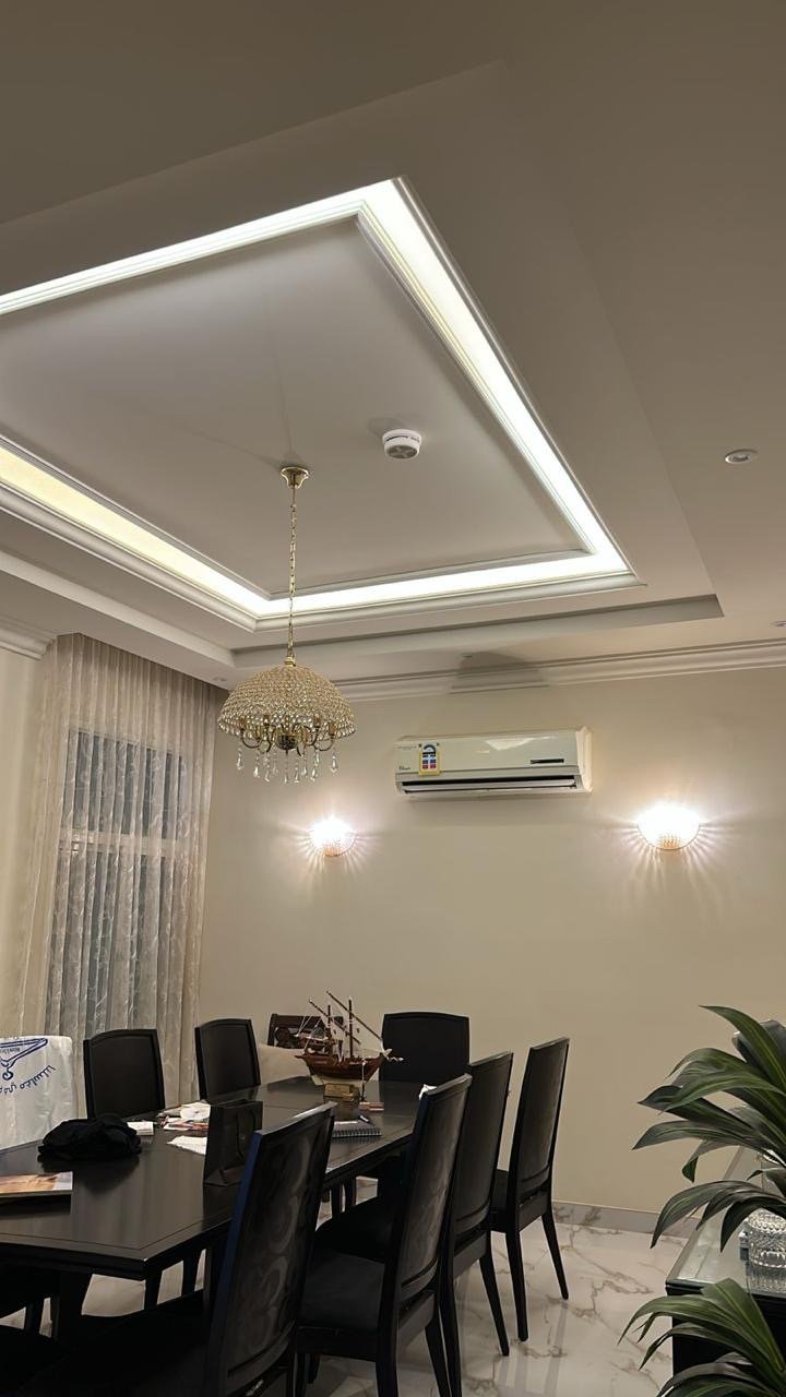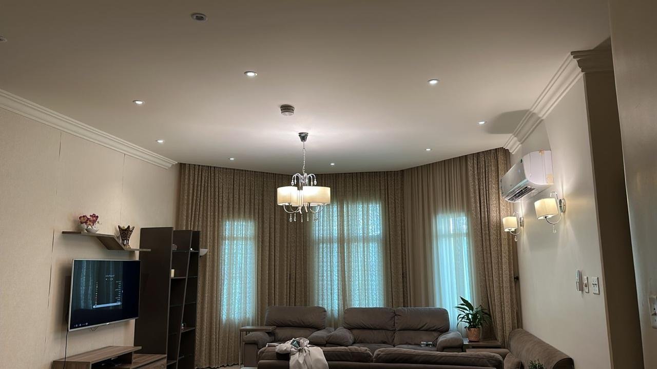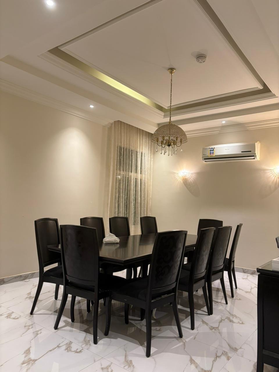 صالة كبير-خمس غرف نوم + واحده ماستر وكل غرفتين بينهم حمام تصلح تكون أجنحة +غرفة للأطفال